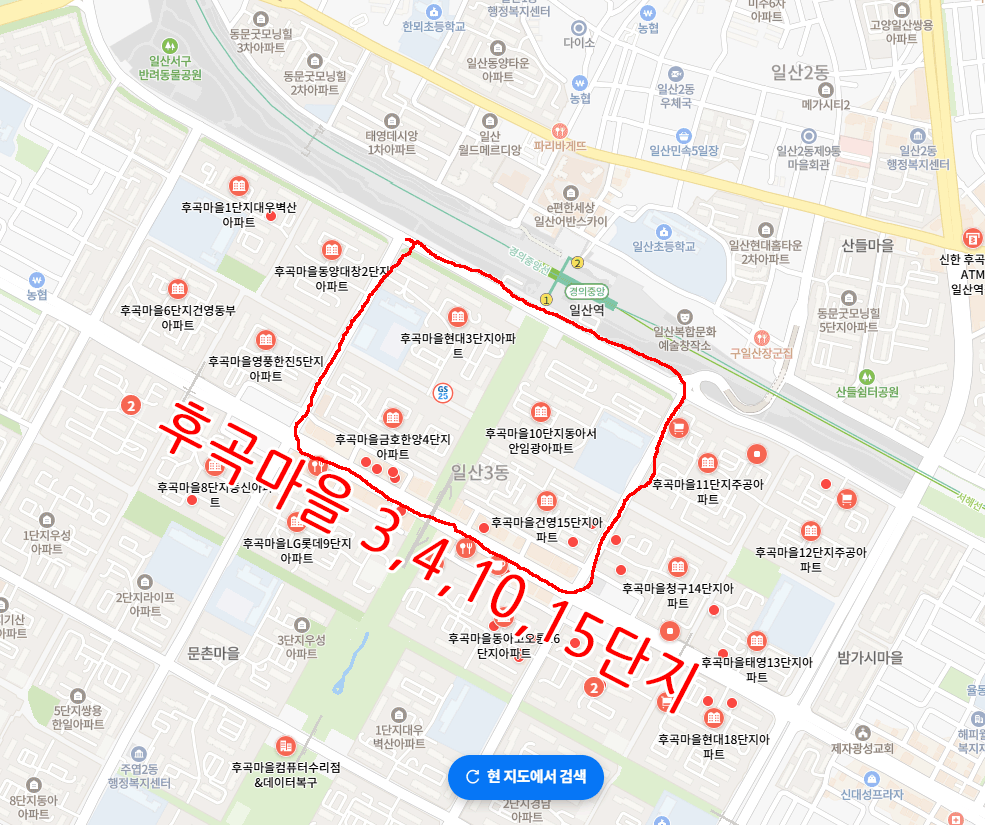 자세히 보시면 마두역 초역세권의 강촌마을이 선정이 되엇구요
